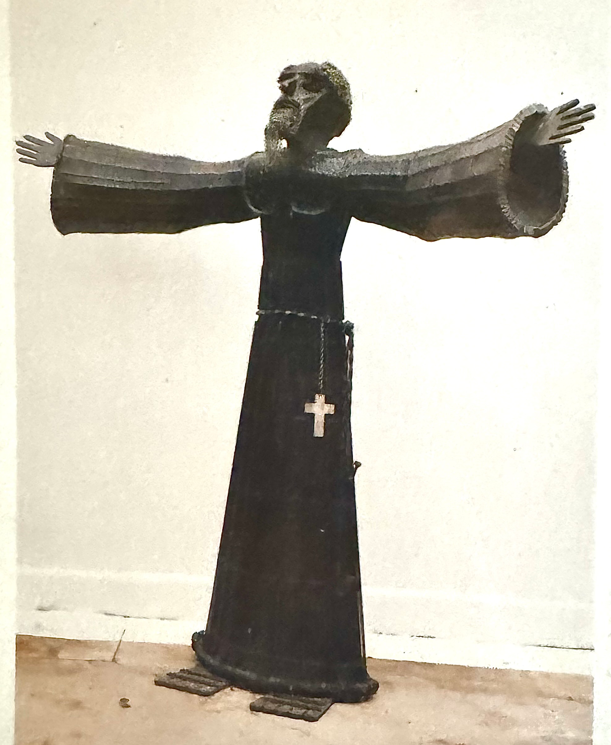 Scupltor/welder, mike peery, is a Utah native working out of his studio. At 5 years old after watching a welder work on a bus, peery took to the craft and became a welder by trade. He welded together pieces of his imagination out of scrap metal, car and bicycle parts, fencing, and other bits of machinery. Peery creates his ornamental characters and pieces some adjusting to 8 feet tall. often metal giants that stand over eight feet tall. One being St. Francis of Assisi guarding day and night constructed from pencil rod, weighing over 1400 pounds. Other realistic works Peery has made such as a scaled down Harley Davidson motorcycles, stacked trains, a helicopter complete with a spinning propeller, rockets, a giant dog, appeals to collectors who appreciate the rugged raw, machine look of Peery's work which sometimes have the expression of creatures in motion, most of his work is in private collections around the world. Now after 35 years Mike struggles to weld because of his eyes, he crashed in a motorcycle accident losing one of his legs leaving him unable to work anymore. Although his age as well as his health, he is now designing modern train artwork as well as other pieces to come like merchandise such as coffee cups, T shirts, and metal artworks. Mad Mike is still in the creative game after years of hard work. mike peery